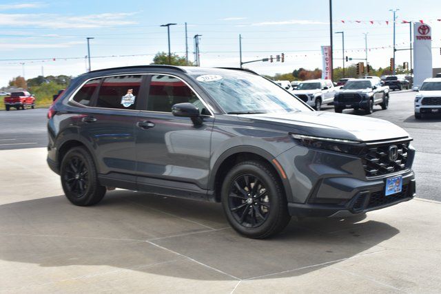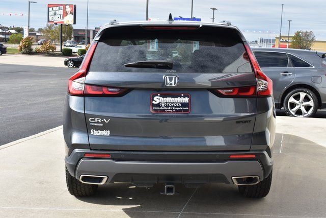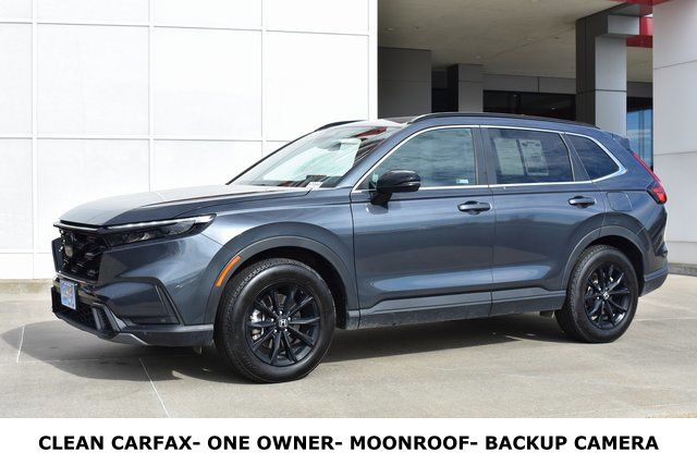 2024 Honda CR-V Hybrid Gray Sport-L 2.0L I4 DOHC 16V eCVT AWD Towing/Camper Pkg, Clean Carfax, One Owner, Sunroof/Moonroof, Leather, Backup Camera, CR-V Hybrid Sport-L, eCVT, AWD, Gray, Black Leather, 8 Speakers, ABS brakes, Air Conditioning, Alloy wheels, AM/FM radio: SiriusXM, Bumpers: body-color, Driver door bin, Driver vanity mirror, Exterior Parking Camera Rear, Front Bucket Seats, Front Center Armrest, Front dual zone A/C, Front reading lights, Fully automatic headlights, Heated door mirrors, Heated Front Bucket Seats, Heated front seats, Illuminated entry, Leather Seat Trim, Leather Shift Knob, Leather steering wheel, Low tire pressure warning, Memory seat, Outside temperature display, Overhead console, Panic alarm, Passenger door bin, Passenger vanity mirror, Power door mirrors, Power driver seat, Power Liftgate, Power moonroof, Power passenger seat, Power steering, Power windows, Radio data system, Rear window defroster, Rear window wiper, Security system, Speed control, Split folding rear seat, Spoiler, Steering wheel mounted audio controls, Tilt steering wheel, Traction control, Turn signal indicator mirrors.