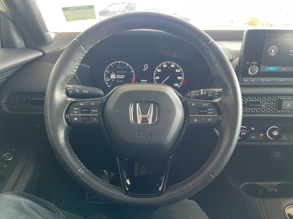 2024 Honda HR-V Sport Urban Gray Pearl 4D Sport Utility 2.0L I4 DOHC 16V i-VTEC CVT AWD Sport This vehicle comes well equipped with 4-Wheel Disc Brakes, 5.436 Axle Ratio, 6 Speakers, ABS brakes, Adaptive Cruise Control: Adaptive Cruise Control (ACC) with Low-Speed Follow, Air Conditioning, Alloy wheels, AM/FM radio, Apple CarPlay/Android Auto, Auto High-beam Headlights, Automatic temperature control, Brake assist, Bumpers: body-color, Cloth Seat Trim, Delay-off headlights, Driver door bin, Driver vanity mirror, Dual front impact airbags, Dual front side impact airbags, Electronic Stability Control, Emergency communication system: HondaLink, Exterior Parking Camera Rear, Four wheel independent suspension, Front anti-roll bar, Front Bucket Seats, Front Center Armrest, Front reading lights, Fully automatic headlights, Heated door mirrors, Heated Front Bucket Seats, Heated front seats, Illuminated entry, Knee airbag, Leather Shift Knob, Leather steering wheel, Low tire pressure warning, Occupant sensing airbag, Outside temperature display, Overhead airbag, Panic alarm, Passenger door bin, Passenger vanity mirror, Power door mirrors, Power steering, Power windows, Radio data system, Radio: 180-Watt Audio System w/6 Speakers, Rear anti-roll bar, Rear reading lights, Rear side impact airbag, Rear window defroster, Rear window wiper, Remote keyless entry, Security system, Speed control, Speed-sensing steering, Split folding rear seat, Spoiler, Steering wheel mounted audio controls, Tachometer, Telescoping steering wheel, Tilt steering wheel, Traction control, Trip computer, Turn signal indicator mirrors, Variably intermittent wipers, and Wheels: 18" Gloss Black Alloy.