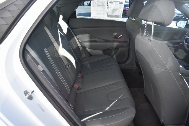 2024 Hyundai Elantra Serenity White SEL I4 CVT FWD One Owner, Navigation, Backup Camera, Elantra SEL, CVT, FWD, Serenity White, Medium Gray w/Cloth Seat Trim, 6 Speakers, ABS brakes, Air Conditioning, Alloy wheels, AM/FM radio: SiriusXM, Automatic temperature control, Bumpers: body-color, Cloth Seat Trim, Driver door bin, Driver vanity mirror, Exterior Parking Camera Rear, Front Bucket Seats, Front Center Armrest, Front dual zone A/C, Front reading lights, Fully automatic headlights, Illuminated entry, Low tire pressure warning, Navigation System, Occupant sensing airbag, Outside temperature display, Overhead console, Passenger door bin, Passenger vanity mirror, Power door mirrors, Power steering, Power windows, Remote keyless entry, Security system, Speed control, Speed-sensing steering, Steering wheel mounted audio controls, Telescoping steering wheel, Tilt steering wheel, Variably intermittent wipers.