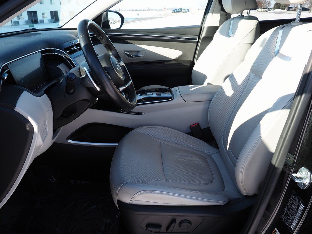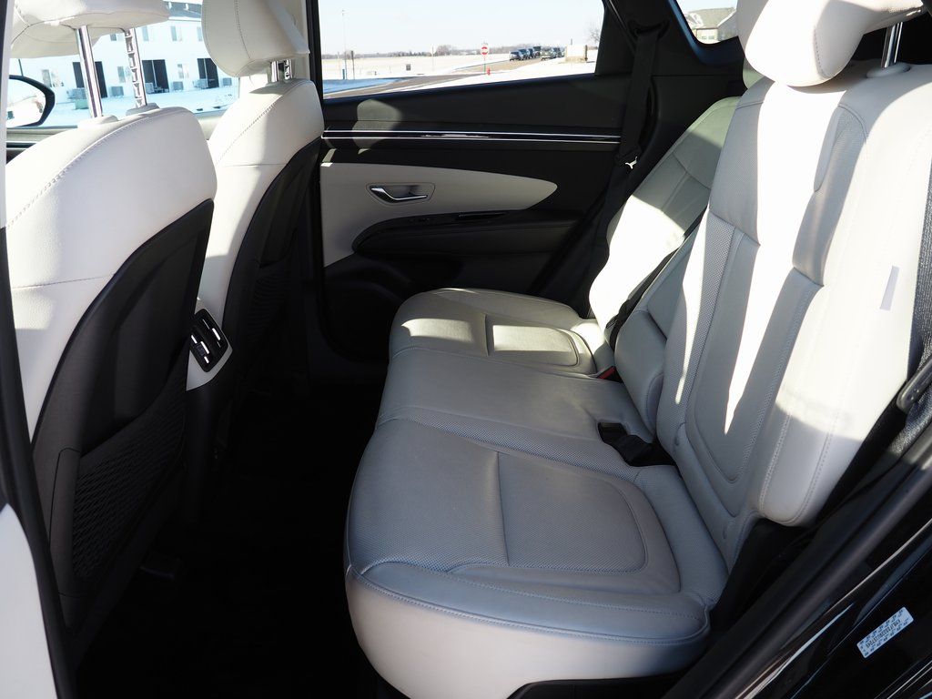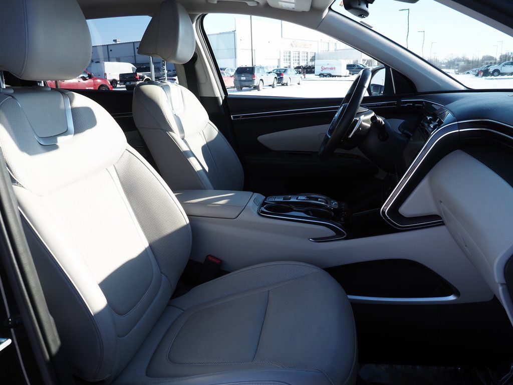 2024 Hyundai Tucson Plug-In Hybrid Limited Amazon Gray 4D Sport Utility I4 6-Speed Automatic AWD Limited This vehicle comes well equipped with Option Group 01, 3.32 Axle Ratio, 4-Wheel Disc Brakes, 8 Speakers, ABS brakes, Air Conditioning, Alloy wheels, AM/FM radio: SiriusXM, Apple CarPlay & Android Auto, Auto High-beam Headlights, Auto-dimming Rear-View mirror, Automatic temperature control, Brake assist, Bumpers: body-color, Delay-off headlights, Driver door bin, Driver vanity mirror, Dual front impact airbags, Dual front side impact airbags, Electronic Stability Control, Emergency communication system, Exterior Parking Camera Rear, Four wheel independent suspension, Front anti-roll bar, Front Bucket Seats, Front Center Armrest, Front dual zone A/C, Front reading lights, Fully automatic headlights, Garage door transmitter: HomeLink, Heated & Ventilated Front Bucket Seats, Heated door mirrors, Heated front seats, Heated rear seats, Heated steering wheel, Illuminated entry, Leather Seat Trim, Low tire pressure warning, Memory seat, Navigation System, Occupant sensing airbag, Outside temperature display, Overhead airbag, Overhead console, Panic alarm, Passenger door bin, Passenger vanity mirror, Power door mirrors, Power driver seat, Power Liftgate, Power moonroof, Power passenger seat, Power steering, Power windows, Radio data system, Radio: Bose Premium w/AM/FM/HD Audio System, Rain sensing wipers, Rear anti-roll bar, Rear reading lights, Rear seat center armrest, Rear side impact airbag, Rear window defroster, Rear window wiper, Remote keyless entry, Security system, Speed control, Split folding rear seat, Spoiler, Steering wheel mounted audio controls, Tachometer, Telescoping steering wheel, Tilt steering wheel, Traction control, Trip computer, Turn signal indicator mirrors, Variably intermittent wipers, Ventilated front seats, and Wheels: 19" x 7.5J Alloy.