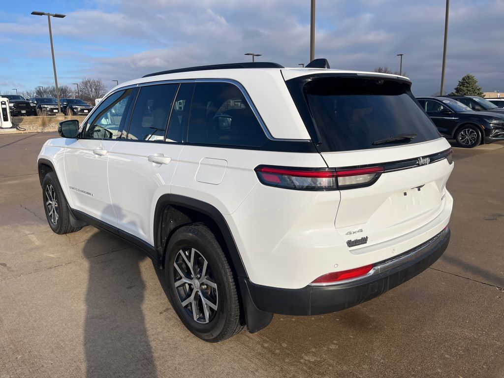 2024 Jeep Grand Cherokee Limited Bright White Clearcoat 4D Sport Utility 3.6L V6 24V VVT 8-Speed Automatic 4WD Limited This vehicle comes well equipped with Luxury Tech Group II (Intersection Collision Assist System, Memory Steering Column, Power Tilt/Telescope Steering Column, Surround View Camera System, and Wireless Charging Pad), MOPAR Finishing Package (MOPAR Front Splash Guards and MOPAR Paint Protection Film), Quick Order Package 22E, 3.45 Rear Axle Ratio, 4-Wheel Disc Brakes, 6 Speakers, ABS brakes, Active Noise Control System, Air Conditioning, Alloy wheels, AM/FM radio: SiriusXM with 360L, Anti-whiplash front head restraints, Audio memory, Auto High-beam Headlights, Automatic temperature control, Brake assist, Bumpers: body-color, Capri Leatherette Seats, Compass, Delay-off headlights, Driver door bin, Driver vanity mirror, Dual front impact airbags, Dual front side impact airbags, Dual-Pane Panoramic Sunroof, Electronic Stability Control, Emergency communication system, Four wheel independent suspension, Front anti-roll bar, Front Bucket Seats, Front Center Armrest w/Storage, Front dual zone A/C, Front fog lights, Front License Plate Bracket, Front reading lights, Fully automatic headlights, Garage door transmitter, Heated door mirrors, Heated front seats, Heated rear seats, Heated steering wheel, Illuminated entry, Knee airbag, Low tire pressure warning, Memory seat, Navigation System, Normal Duty Suspension, Occupant sensing airbag, Outside temperature display, Overhead airbag, Overhead console, Panic alarm, ParkView Rear Back-Up Camera, Passenger door bin, Passenger vanity mirror, Power door mirrors, Power driver seat, Power Liftgate, Power passenger seat, Power steering, Power windows, Radio data system, Radio: Uconnect 5 Nav w/10.1" Display, Rear anti-roll bar, Rear reading lights, Rear window defroster, Rear window wiper, Remote keyless entry, Security system, Speed control, Speed-Sensitive Wipers, Split folding rear seat, Spoiler, Steering wheel mounted audio controls, Tachometer, Telescoping steering wheel, Tilt steering wheel, Traction control, Trip computer, Turn signal indicator mirrors, Variably intermittent wipers, Voltmeter, and Wheels: 18" x 8" Polished/Painted Aluminum.
