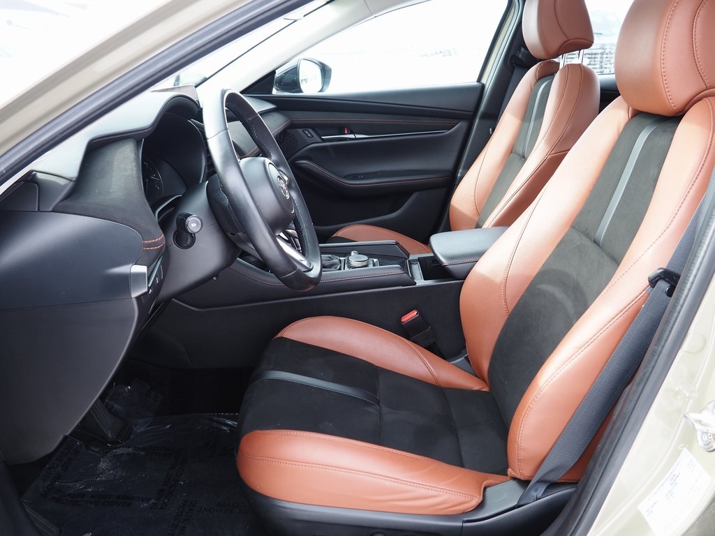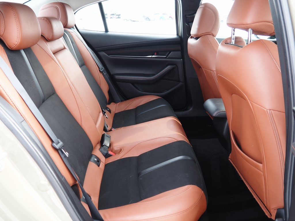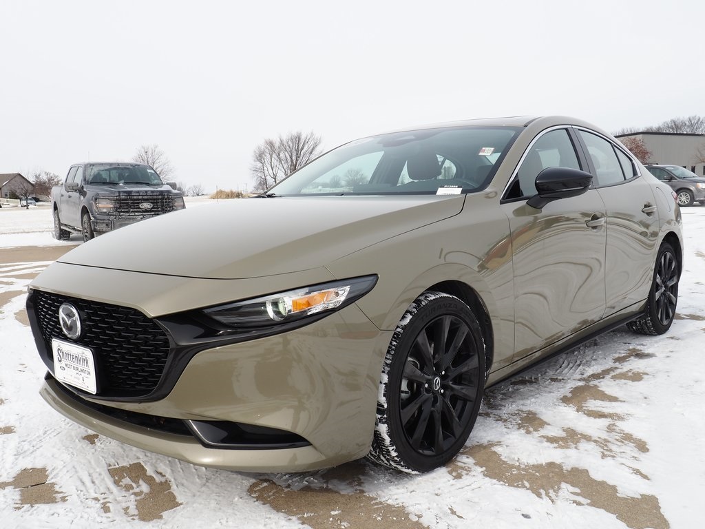 2024 Mazda Mazda3 2.5 Carbon Turbo Zircon Sand Metallic 4D Sedan 2.5L I4 Turbocharged DOHC 16V LEV3-ULEV70 227hp 6-Speed Automatic AWD 2.5 Carbon Turbo This vehicle comes well equipped with 4-Wheel Disc Brakes, 8 Speakers, ABS brakes, Air Conditioning, Alloy wheels, AM/FM radio, Auto High-beam Headlights, Automatic temperature control, Brake assist, Bumpers: body-color, Compass, Delay-off headlights, Driver door bin, Driver vanity mirror, Dual front impact airbags, Dual front side impact airbags, Electronic Stability Control, Emergency communication system: Mazda Connected Services (3-year complimentary trial included), Exterior Parking Camera Rear, Front anti-roll bar, Front Bucket Seats, Front Center Armrest, Front dual zone A/C, Front reading lights, Front wheel independent suspension, Fully automatic headlights, Heated door mirrors, Heated front seats, Heated Front Sport Bucket Seats, Illuminated entry, Knee airbag, Leather Shift Knob, Leather steering wheel, Leatherette Seat Trim, Low tire pressure warning, MAZDA CONNECT Infotainment System, Memory seat, Occupant sensing airbag, Outside temperature display, Overhead airbag, Overhead console, Panic alarm, Passenger door bin, Passenger vanity mirror, Power door mirrors, Power driver seat, Power moonroof, Power steering, Power windows, Radio data system, Radio: AM/FM/HD Audio System, Rain sensing wipers, Rear seat center armrest, Rear side impact airbag, Rear window defroster, Remote keyless entry, Speed control, Speed-sensing steering, Split folding rear seat, Steering wheel mounted audio controls, Tachometer, Telescoping steering wheel, Tilt steering wheel, Traction control, Trip computer, Turn signal indicator mirrors, Variably intermittent wipers, and Wheels: 18" x 7J Aluminum Alloy.