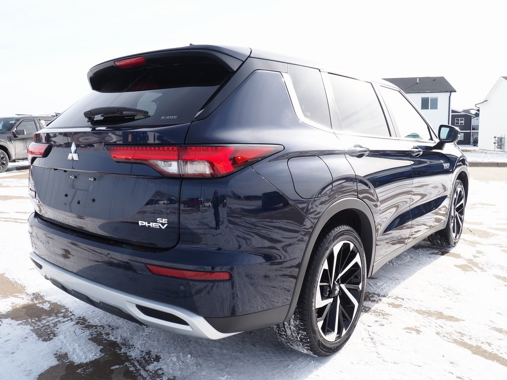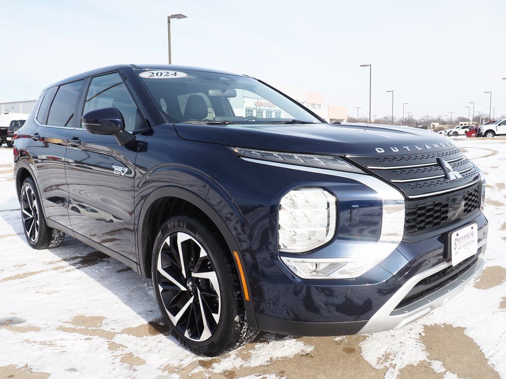 2024 Mitsubishi Outlander PHEV SE Cosmic Blue Metallic 4D Sport Utility 2.4L 4-Cylinder DI DOHC 1-Speed Automatic 4WD SE This vehicle comes well equipped with ABS brakes, Active Cruise Control, Alloy wheels, Electronic Stability Control, Front dual zone A/C, Heated door mirrors, Heated Front Bucket Seats, Heated front seats, Illuminated entry, Low tire pressure warning, Navigation System, Power Liftgate, Remote keyless entry, and Traction control ABS brakes, Active Cruise Control, Alloy wheels, Electronic Stability Control, Front dual zone A/C, Heated door mirrors, Heated Front Bucket Seats, Heated front seats, Illuminated entry, Low tire pressure warning, Navigation System, Power Liftgate, Remote keyless entry, Traction control, 3rd row seats: split-bench, 4-Wheel Disc Brakes, 6 Speakers, Air Conditioning, AM/FM radio: SiriusXM, Android Auto & Apple CarPlay, Auto High-beam Headlights, Automatic temperature control, Axle Ratio: TBD, Brake assist, Bumpers: body-color, Driver door bin, Driver vanity mirror, Dual front impact airbags, Dual front side impact airbags, Emergency communication system: Mitsubishi Connect w/ 24-month trial, Four wheel independent suspension, Front anti-roll bar, Front Bucket Seats, Front Center Armrest w/Storage, Front fog lights, Front reading lights, Fully automatic headlights, Headlight cleaning, Knee airbag, Leather Shift Knob, Leather steering wheel, Occupant sensing airbag, Outside temperature display, Overhead airbag, Overhead console, Panic alarm, Passenger door bin, Passenger vanity mirror, Power door mirrors, Power driver seat, Power steering, Power windows, Radio data system, Radio: AM/FM 9" Smartphone Link Display Audio, Rain sensing wipers, Rear anti-roll bar, Rear seat center armrest, Rear side impact airbag, Rear window defroster, Rear window wiper, Reclining 3rd row seat, Security system, Speed control, Speed-Sensitive Wipers, Split folding rear seat, Spoiler, Steering wheel mounted audio controls, Synthetic Leather Seating Surfaces, Tachometer, Telescoping steering wheel, Tilt steering wheel, Trip computer, Turn signal indicator mirrors, Variably intermittent wipers, and Wheels: 20" Two-Tone Alloy.