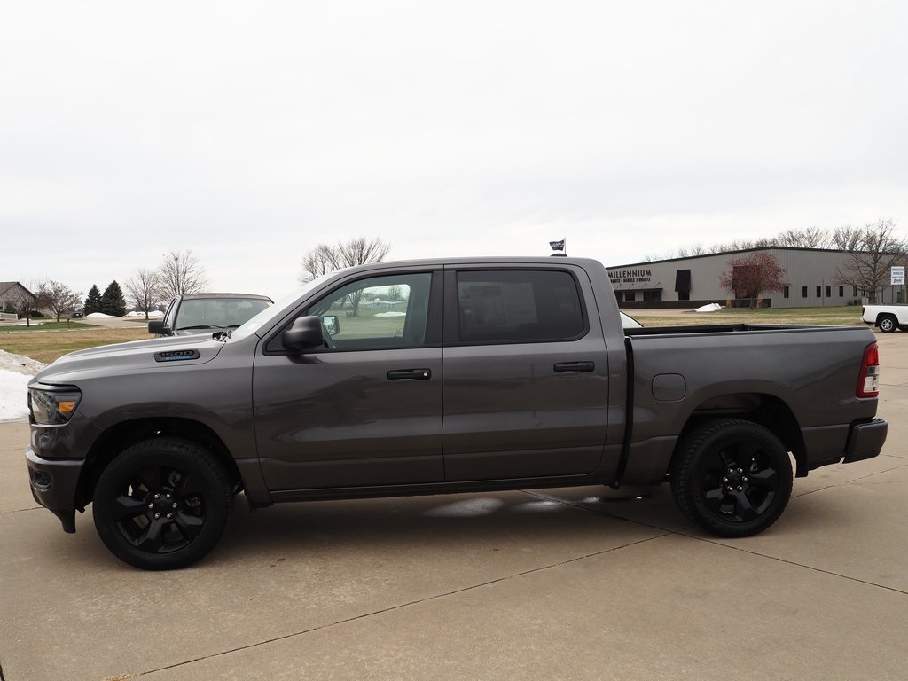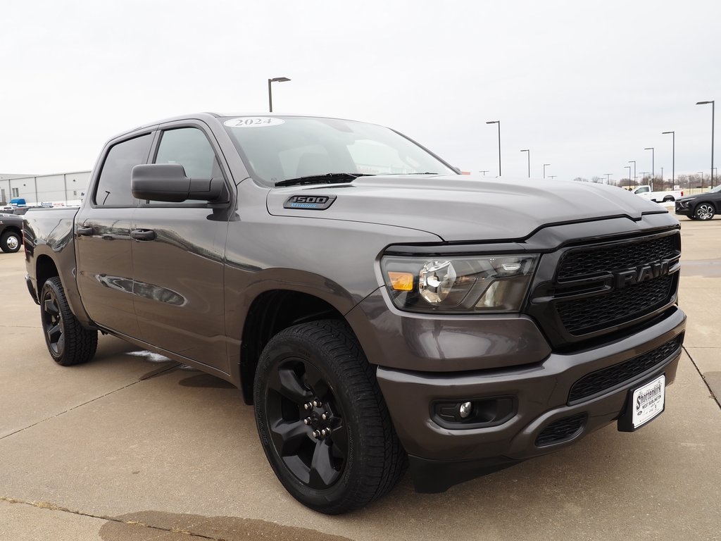 2024 Ram 1500 Tradesman Granite Crystal Metallic Clearcoat 4D Crew Cab 3.6L V6 24V VVT 8-Speed Automatic 4WD Tradesman This vehicle comes well equipped with Night Edition (3 Rear Seat Head Restraints, 4 Way Front Headrests, 40/20/40 Split Bench Seat, Anti-Spin Differential Rear Axle, Black Interior Accents, Body Color Front Bumper, Carpet Floor Covering, Cloth 40/20/40 Bench Seat, Front & Rear Floor Mats, Front Center Seat Cushion Storage, Front Fog Lamps, Grille Black Surround Black Mesh, Manual Adjust 4-Way Driver Seat, Rear Folding Seat, and Wheels: 20" x 9" Cast Aluminum Black), Quick Order Package 23A Tradesman, Tradesman Level 1 Equipment Group (Rear Power Sliding Window), 3.21 Rear Axle Ratio, 4-Wheel Disc Brakes, 48V Belt Starter Generator, 6 Speakers, ABS brakes, Air Conditioning, AM/FM radio, Brake assist, Compass, Delay-off headlights, Driver door bin, Dual front impact airbags, Dual front side impact airbags, Electronic Stability Control, Emergency communication system: RAM Connect, Exterior Mirrors w/Heating Element, For Details, Visit DriveUconnect.com, Front anti-roll bar, Front Center Armrest, Front License Plate Bracket, Front reading lights, Front wheel independent suspension, Fully automatic headlights, Global Telematics Box Module (TBM), Heated door mirrors, Heavy Duty Vinyl 40/20/40 Split Bench Seat, Illuminated entry, Low tire pressure warning, Occupant sensing airbag, Outside temperature display, Overhead airbag, Overhead console, Panic alarm, ParkView Rear Back-Up Camera, Passenger door bin, Passenger vanity mirror, Power door mirrors, Power steering, Power windows, Radio data system, Radio: Uconnect 3 w/5" Display, RAM Grille Badge - Chrome, Rear anti-roll bar, Rear step bumper, Remote keyless entry, Speed control, Tachometer, Telescoping steering wheel, Tilt steering wheel, Traction control, Variably intermittent wipers, Voltmeter, and Wheels: 18" x 7.5" Steel PainteD.