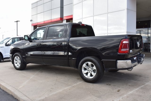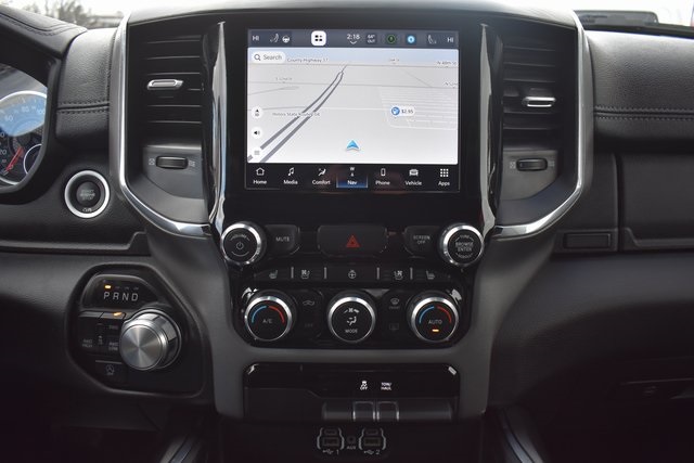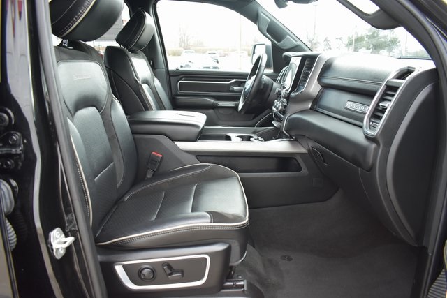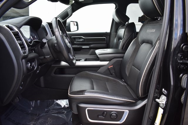 2024 Ram 1500 Diamond Black Crystal Pearlcoat Laramie HEMI 5.7L V8 Multi Displacement VVT eTorque 8-Speed Automatic 4WD One Owner, Navigation, Leather, Backup Camera, 1500 Laramie, 8-Speed Automatic, 4WD, Diamond Black Crystal Pearlcoat, Black Leather, 10 Speakers, ABS brakes, Air Conditioning, Alloy wheels, AM/FM radio: SiriusXM with 360L, Auto-dimming door mirrors, Automatic temperature control, Bumpers: chrome, Compass, Driver door bin, Driver Seat Memory, Driver vanity mirror, Exterior Mirrors w/Memory, Front Center Armrest w/Storage, Front dual zone A/C, Front reading lights, Fully automatic headlights, HD Radio, Heated door mirrors, Heated front seats, Heated Steering Wheel, Illuminated entry, Leather steering wheel, Low tire pressure warning, Memory seat, Navigation System, Occupant sensing airbag, Outside temperature display, Panic alarm, ParkView Rear Back-Up Camera, Passenger door bin, Passenger vanity mirror, Power 2-Way Driver Lumbar Adjust, Power 2-Way Passenger Lumbar Adjust, Power 8-Way Driver & Passenger Seats, Power door mirrors, Power driver seat, Power passenger seat, Power steering, Power windows, Power-Folding Mirrors, Radio data system, RAM Grille Badge - Chrome, Rear 60/40 Folding Seat, Rear seat center armrest, Rear step bumper, Speed control, Split folding rear seat, Steering wheel mounted audio controls, Telescoping steering wheel, Tilt steering wheel, Traction control, Trip computer, Turn signal indicator mirrors, Ventilated front seats.