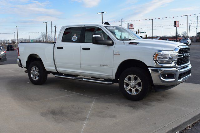 2024 Ram 2500 Bright White Clearcoat Big Horn Cummins 6.7L I6 Turbodiesel 6-Speed Automatic 4WD Fixed Running Boards, Towing/Camper Pkg, One Owner, Backup Camera, 2500 Big Horn, 6-Speed Automatic, 4WD, Bright White Clearcoat, Diesel Gray/Black Cloth, 6 Speakers, ABS brakes, Air Conditioning, Auto Power-Folding Mirrors, Big Horn IP Badge, Black Exterior Mirrors, Bumpers: chrome, Center Hub, Center Stack Storage Drawer, Chrome Flat Cab-Length Side Steps, Driver door bin, Exterior Mirrors Courtesy Lamps, Front Armrest w/Cupholders, Front Center Armrest w/Storage, Front Center Seat Cushion Storage, Front reading lights, Fully automatic headlights, Heated door mirrors, Illuminated entry, Leather Wrapped Steering Wheel, Low tire pressure warning, Overhead console, ParkView Rear Back-Up Camera, Passenger door bin, Passenger vanity mirror, Power 2-Way Driver Lumbar Adjust, Power Adjust Mirrors, Power Adjustable Convex Aux Mirrors, Power door mirrors, Power Heated Fold Telescope Mirrors, Power Telescoping Mirrors, Radio data system, Rear seat center armrest, Rear step bumper, Speed control, Steering Wheel Mounted Audio Controls, Tilt steering wheel, Traction control, Trip computer, Turn signal indicator mirrors, Variably intermittent wipers.