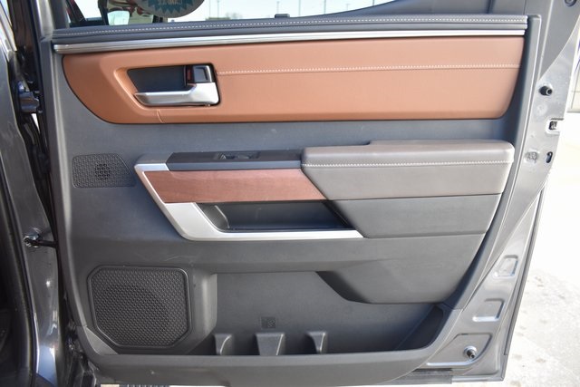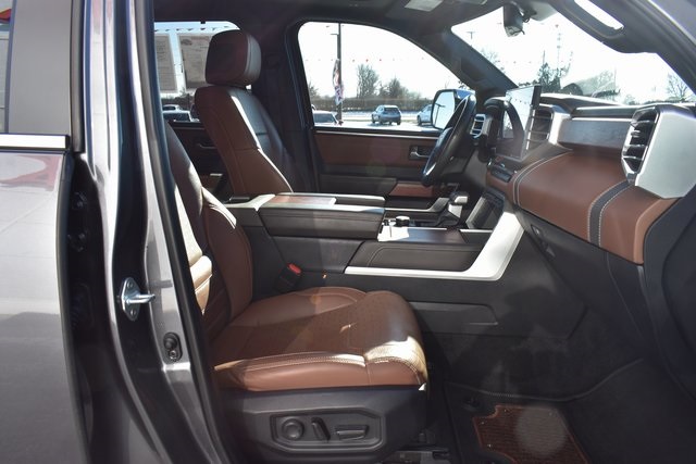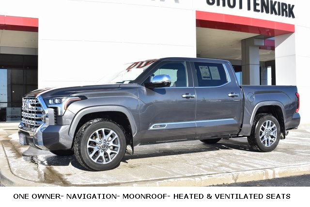 2024 Toyota Tundra Gray 1794 3.4L V6 10-Speed Automatic 4WD Fixed Running Boards, Towing/Camper Pkg, One Owner, Navigation, Sunroof/Moonroof, Leather, Local Trade, Backup Camera, Tundra 1794, 10-Speed Automatic, 4WD, Gray, Saddle Tan w/Leather Seat Trim, 10-Way Pwr Adj Heated and Ventilated Front Seats, 12 Speakers, ABS brakes, Air Conditioning, Alloy wheels, AM/FM radio: SiriusXM, Automatic temperature control, Bumpers: body-color, Driver door bin, Driver vanity mirror, Exterior Parking Camera Rear, Front Bucket Seats, Front Center Armrest, Front dual zone A/C, Front reading lights, Fully automatic headlights, Heated door mirrors, Heated front seats, Heated rear seats, Heated steering wheel, Illuminated entry, Leather Seat Trim, Leather Shift Knob, Low tire pressure warning, Memory seat, Navigation System, Outside temperature display, Overhead console, Passenger door bin, Passenger vanity mirror, Power door mirrors, Power driver seat, Power moonroof, Power passenger seat, Power steering, Power windows, Radio data system, Rear seat center armrest, Rear step bumper, Rear window defroster, Remote keyless entry, Security system, Speed control, Split folding rear seat, Steering wheel mounted audio controls, Tilt steering wheel, Traction control, Turn signal indicator mirrors, Ventilated front seats, Ventilated rear seats.