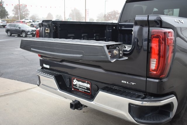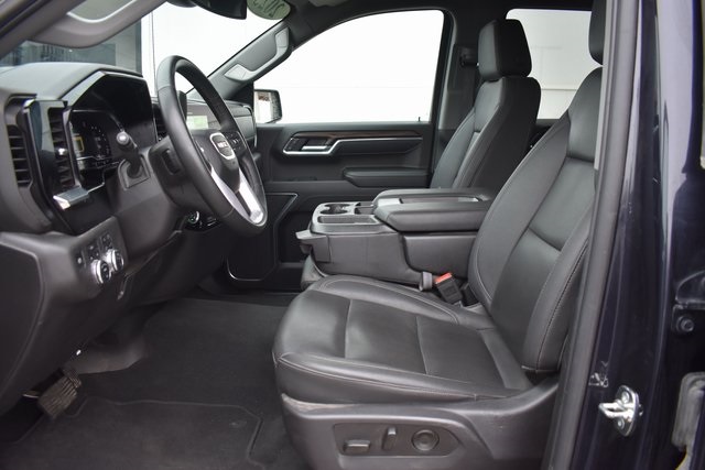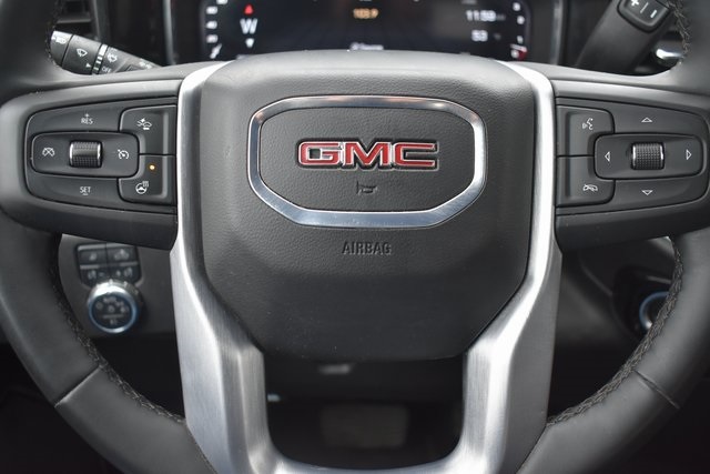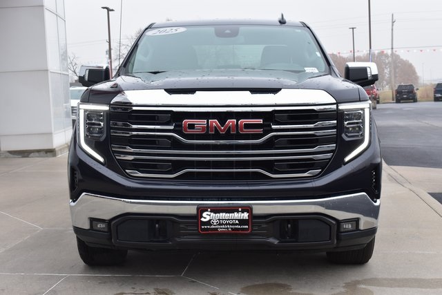 2025 GMC Sierra 1500 Titanium Rush Metallic SLT EcoTec3 5.3L V8 10-Speed Automatic 4WD Towing/Camper Pkg, One Owner, Navigation, Leather, Backup Camera, Sierra 1500 SLT, 10-Speed Automatic, 4WD, Titanium Rush Metallic, Black Leather, 6 Speakers, 6-Speaker Audio System Feature, ABS brakes, Air Conditioning, Alloy wheels, AM/FM radio: SiriusXM with 360L, Automatic temperature control, Bumpers: chrome, Compass, Driver door bin, Driver vanity mirror, Forward Collision Alert, Front Center Armrest w/Storage, Front dual zone A/C, Front Pedestrian Braking, Front reading lights, Fully automatic headlights, Heated door mirrors, Heated front seats, Heated steering wheel, Illuminated entry, Lane Keep Assist w/Lane Departure Warning, Low tire pressure warning, Memory seat, Navigation System, Outside temperature display, Overhead console, Panic alarm, Passenger door bin, Passenger vanity mirror, Power Door Locks, Power door mirrors, Power driver seat, Power Front Passenger Windows w/Express Up/Down, Power Front Windows w/Driver Express Up/Down, Power passenger seat, Power Rear Windows w/Express Down, Power steering, Power windows, Push Button Start, Radio data system, Rear seat center armrest, Rear step bumper, Rear window defroster, Remote keyless entry, Speed control, Speed-sensing steering, Split folding rear seat, Steering Wheel Audio Controls, Steering wheel mounted audio controls, Telescoping steering wheel, Tilt steering wheel, Traction control.