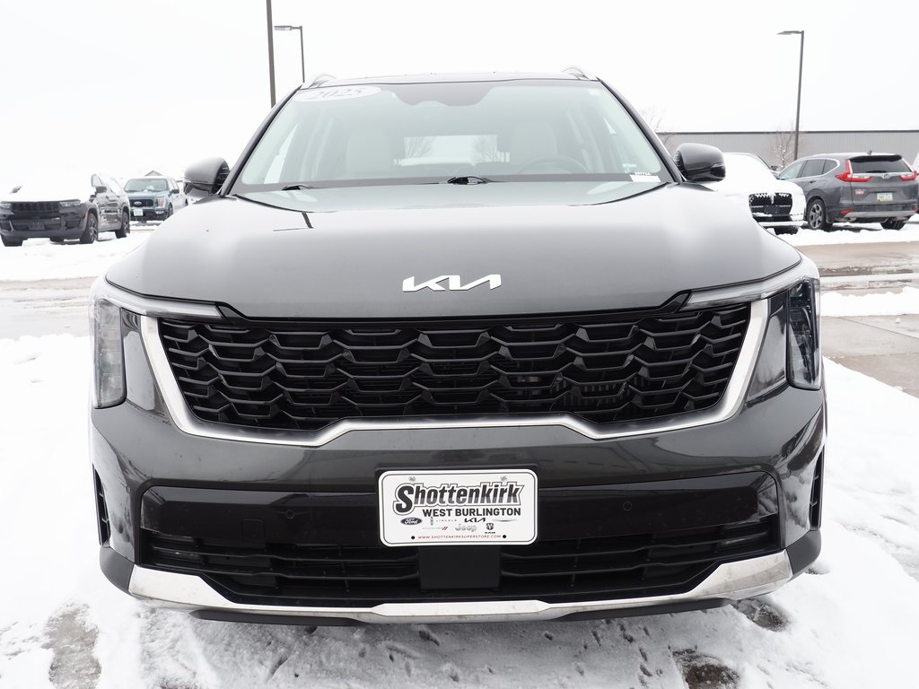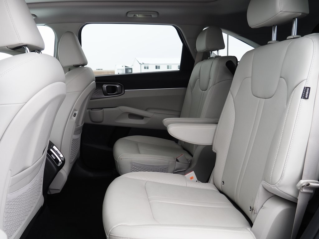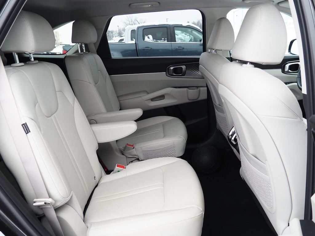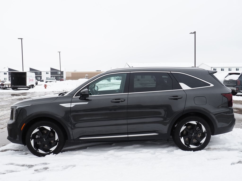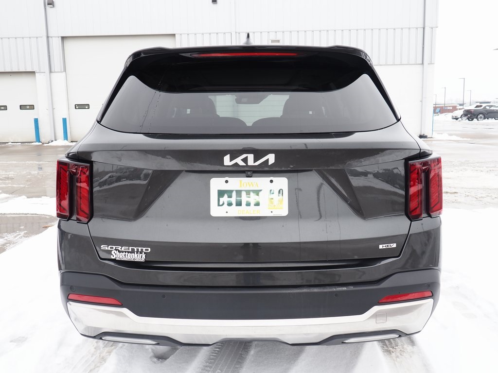 2025 Kia Sorento Hybrid EX Interstellar Gray 4D Sport Utility 1.6L Turbo GDI 4-Cylinder 6-Speed Automatic AWD EX This vehicle comes well equipped with EX Panoramic Sunroof Package (LED Interior Lighting and Power Sunroof w/Power Sunshade), 3rd row seats: split-bench, 4-Wheel Disc Brakes, 6 Speakers, ABS brakes, Air Conditioning, Alloy wheels, AM/FM radio: SiriusXM, Apple CarPlay & Android Auto, Auto High-beam Headlights, Automatic temperature control, Brake assist, Bumpers: body-color, Carpeted Floor Mats, Delay-off headlights, Driver door bin, Driver vanity mirror, Dual front impact airbags, Dual front side impact airbags, Electronic Stability Control, Emergency communication system: 911 Connect, Exterior Parking Camera Rear, Four wheel independent suspension, Front anti-roll bar, Front Bucket Seats, Front Center Armrest, Front dual zone A/C, Front fog lights, Front reading lights, Fully automatic headlights, Heated door mirrors, Heated Front Bucket Seats, Heated front seats, Illuminated entry, Knee airbag, Leather steering wheel, Low tire pressure warning, Navigation System, Occupant sensing airbag, Outside temperature display, Overhead airbag, Overhead console, Panic alarm, Passenger door bin, Passenger vanity mirror, Power door mirrors, Power driver seat, Power Liftgate, Power passenger seat, Power steering, Power windows, Radio data system, Radio: AM/FM/SiriusXM Audio System, Rear air conditioning, Rear anti-roll bar, Rear reading lights, Rear window defroster, Rear window wiper, Remote keyless entry, Security system, Speed control, Speed-sensing steering, Split folding rear seat, Spoiler, Steering wheel mounted audio controls, SynTex Artificial Leather Seat Trim, Tachometer, Telescoping steering wheel, Tilt steering wheel, Traction control, Trip computer, Turn signal indicator mirrors, Variably intermittent wipers, and Wheels: 19" Machine-Finished Aero Alloy.