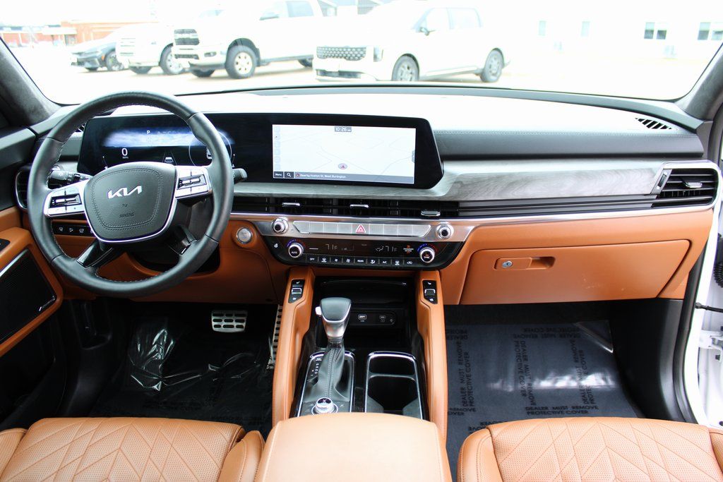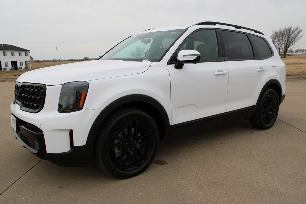 2025 Kia Telluride SX-Prestige X-Line Glacial White Pearl 4D Sport Utility 3.8L V6 DOHC 8-Speed Automatic AWD SX-Prestige X-Line This vehicle comes well equipped with 10 Speakers, 3rd row seats: split-bench, 4-Wheel Disc Brakes, ABS brakes, Air Conditioning, Alloy wheels, AM/FM radio: SiriusXM, Apple CarPlay & Android Auto, Auto High-beam Headlights, Auto-dimming Rear-View mirror, Auto-leveling suspension, Automatic temperature control, Brake assist, Bumpers: body-color, Carpeted Floor Mats, Compass, Delay-off headlights, Driver door bin, Driver vanity mirror, Dual front impact airbags, Dual front side impact airbags, Electronic Stability Control, Emergency communication system: 911 Connect, Exterior Parking Camera Rear, Four wheel independent suspension, Front anti-roll bar, Front Bucket Seats, Front Center Armrest, Front dual zone A/C, Front fog lights, Front reading lights, Fully automatic headlights, Garage door transmitter: HomeLink, harman/kardon® Speakers, Heated & Ventilated Front Bucket Seats, Heated door mirrors, Heated front seats, Illuminated entry, Knee airbag, Leather Shift Knob, Leather steering wheel, Low tire pressure warning, Memory seat, Navigation System, Occupant sensing airbag, Outside temperature display, Overhead airbag, Overhead console, Panic alarm, Passenger door bin, Passenger vanity mirror, Power door mirrors, Power driver seat, Power Liftgate, Power moonroof, Power passenger seat, Power steering, Power windows, Radio data system, Radio: AM/FM Harman Kardon Audio System, Rear air conditioning, Rear anti-roll bar, Rear audio controls, Rear reading lights, Rear side impact airbag, Rear window defroster, Rear window wiper, Reclining 3rd row seat, Remote keyless entry, Security system, Speed control, Speed-sensing steering, Split folding rear seat, Spoiler, Steering wheel mounted audio controls, Tachometer, Telescoping steering wheel, Tilt steering wheel, Traction control, Trip computer, Turn signal indicator mirrors, Variably intermittent wipers, and Ventilated front seats.