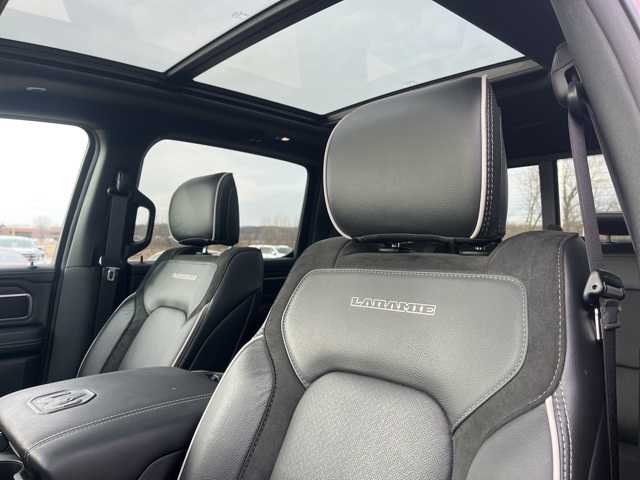 CARFAX One-Owner. Clean CARFAX. Navigation, Moonroof, Leather, Heated and cooled seats, Heated seats, Heated steering wheel, XM SIRIUS Radio, Push button start, Local trade, Shottenkirk Certified, Fully Serviced and Detailed, Bluetooth, Rear Back Up Camera, Power driver's seat, Power passenger seat, Memory seats, Blind spot indicator, Balance of factory warranty, Free Carfax history report, Steering Wheel Controls, Alloy Wheels, Leather Interior, Power Sunroof/Moonroof, Lane Monitor, 1500 Laramie, 4D Crew Cab, 3.0L I6, 8-Speed Automatic, 4WD, Delmonico Red Pearlcoat, Black w/Leather Trimmed Bucket Seats, #1 Seat Foam Cushion, 10 Speakers, 3 Rear Seat Head Restraints, 3.55 Rear Axle Ratio, 4 Way Front Headrests, 4-Wheel Disc Brakes, 4G LTE Wi-Fi Hot Spot, ABS brakes, Accent Color Premium Power Mirrors, Air Conditioning, Alloy wheels, AM/FM radio: SiriusXM with 360L, Apple CarPlay, Apple CarPlay/Android Auto, Audio memory, Auto High-beam Headlights, Auto Power-Folding Mirrors, Auto-dimming door mirrors, Auto-Dimming Exterior Driver Mirror, Auto-dimming Rear-View mirror, Automatic temperature control, Black Interior Accents, Black Painted Exterior Mirrors Caps, Body Color Front Bumper, Body Color Rear Bumper w/Step Pads, Brake assist, Bridgestone Brand Tires, Bucket Seats, Bumpers: chrome, Center Console Parts Module, Chrome Exterior Mirrors, Compass, Connected Travel & Traffic Services, Connectivity - US/Canada, Convex Wide-Angle Exterior Mirror Insert, Delay-off headlights, Dome Dual LED Reading Lamp, Driver door bin, Driver Seat Memory, Driver vanity mirror, Dual front impact airbags, Dual front side impact airbags, Dual-Pane Panoramic Sunroof, Electronic stabiliy control, Exterior Mirrors Courtesy Lamps, Exterior Mirrors w/Heating Element, Exterior Mirrors w/Memory, Exterior Mirrors w/Supplemental Signals, Front anti-roll bar, Front Center Armrest w/Storage, Front dual zone A/C, Front fog lights, Front License Plate Bracket, Front reading lights, Front Seat Back Map Pockets, Front wheel independent suspension, Full Length Upgraded Floor Console, Fully automatic headlights, Google Android Auto, GPS Antenna Input, Grille Surround 3 Body Color Tex 2 Black, HD Radio, Heated door mirrors, Heated Front Seats, Heated front seats, Heated rear seats, Heated Second Row Seats, Heated Steering Wheel, Heated steering wheel, Illuminated entry, Integrated Voice Command w/Bluetooth, Laramie Level 1 Equipment Group, Leather steering wheel, Leather Trimmed Bucket Seats, LED Dome/Reading Lamp, Low tire pressure warning, Memory seat, MOPAR Front & Rear Rubber Floor Mats, Navigation System, Occupant sensing airbag, Outside temperature display, Overhead airbag, Overhead console, Panic alarm, ParkView Rear Back-Up Camera, Passenger door bin, Passenger vanity mirror, Power 2-Way Driver Lumbar Adjust, Power 2-Way Passenger Lumbar Adjust, Power Adjust 8-Way Driver Seat, Power Adjust 8-Way Front Passenger Seat, Power door mirrors, Power driver seat, Power passenger seat, Power steering, Power windows, Quick Order Package 21H Laramie, Radio data system, Radio: Uconnect 5 Nav w/12.0" Display, Rain Sensitive Windshield Wipers, RAM Grille Badge - Chrome, Rear 60/40 Folding Split Recline Seat, Rear anti-roll bar, Rear reading lights, Rear seat center armrest, Rear step bumper, Remote keyless entry, Remote Tailgate Release, Security system, SiriusXM w/360L, Speed control, Split folding rear seat, Sport Appearance Package, Sport Performance Hood, Steering wheel mounted audio controls, Tachometer, Telescoping steering wheel, Tilt steering wheel, Traction control, Trip computer, Turn signal indicator mirrors, USB Host Flip, Variably intermittent wipers, Ventilated Front Seats, Voltmeter, Wheels: 20" x 9" Premium Paint/Polish.