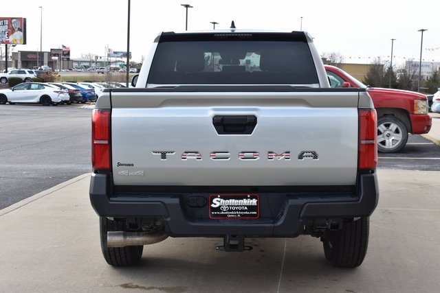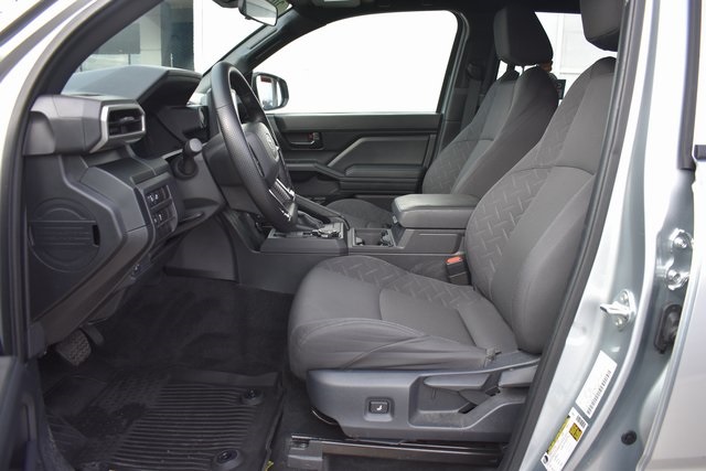 2025 Toyota Tacoma Silver SR 2.4L 4-Cylinder 8-Speed Automatic 4WD Towing/Camper Pkg, Clean Carfax, One Owner, Navigation, Local Trade, Backup Camera, Tacoma SR, 8-Speed Automatic, 4WD, Silver, Black w/Fabric Seat Trim, 6 Speakers, ABS brakes, Air Conditioning, Alloy wheels, AM/FM radio: SiriusXM, Bumpers: body-color, Driver door bin, Exterior Parking Camera Rear, Fabric Seat Trim, Front Bucket Seats, Front Center Armrest, Front reading lights, Fully automatic headlights, Heated door mirrors, Illuminated entry, Low tire pressure warning, Occupant sensing airbag, Outside temperature display, Overhead console, Passenger door bin, Power door mirrors, Power steering, Power windows, Radio: 8" Toyota Audio Multimedia, Rear step bumper, Rear window defroster, Remote keyless entry, Speed control, Split folding rear seat, Steering wheel mounted audio controls, Telescoping steering wheel, Tilt steering wheel, Traction control.